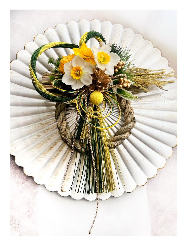 こちらは少し大きめの水仙のしめ縄飾り。