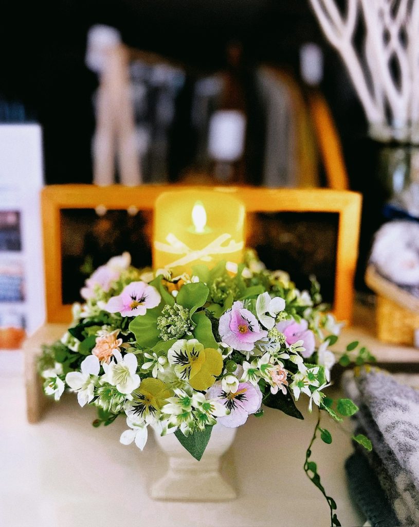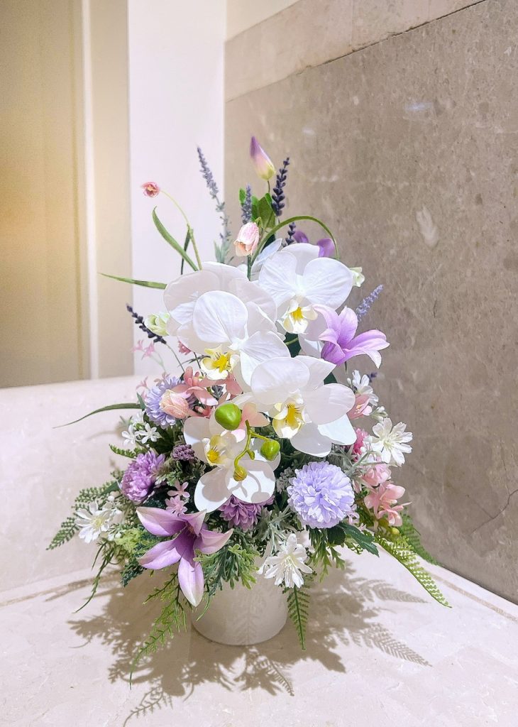今まで長きに渡って7階の元カフェだったスペースの壁際に私のアレンジを