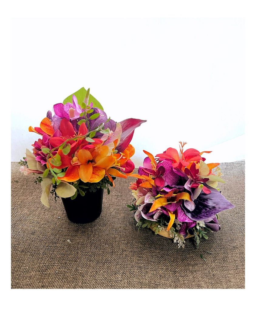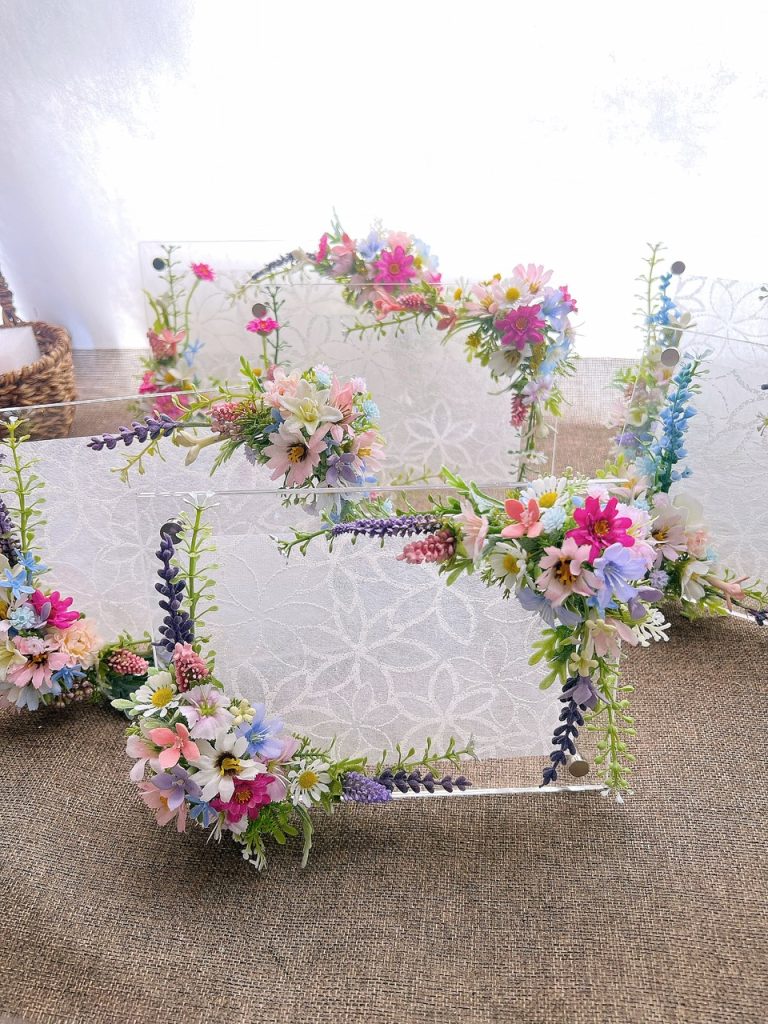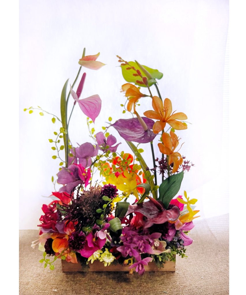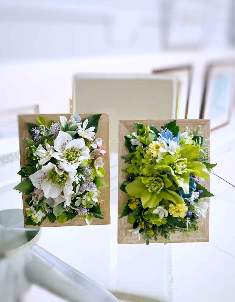 上の画像のフォトフレームや横長のアレンジなどの年明け納品のオーダーを