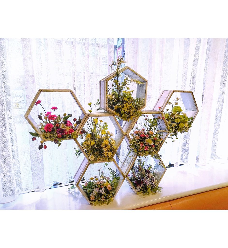蜂の巣の様なベースは私が5角形のベースを接着して、面白いデザイン